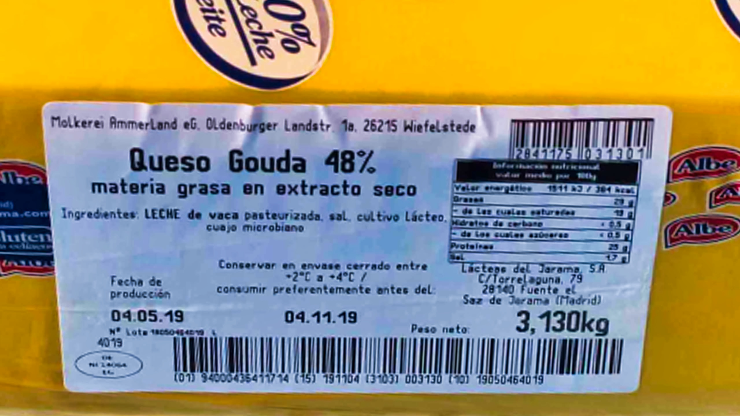 Es el queso de barra clásico suave y cremoso al fundir, con más sabor que su vecino el edam. Es muy utilizado para sandwiches, ensaladas, rellenos, brochetas…El formato del producto es en barra tipo 11x11.